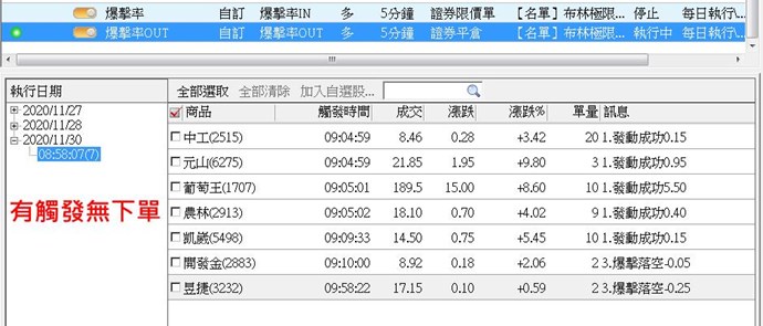 有到價卻不觸發下單是真的,縱使降版到雷達監控比較平穩的3.02.08,但還是會有機率性發生到價卻不觸發下單的情形!