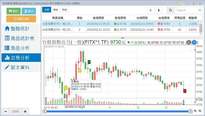 針對「1.最低點S1被收破的時候,執行放空(SHORT),所對應K棒的最高點B1收上時執行停損(BUY)」