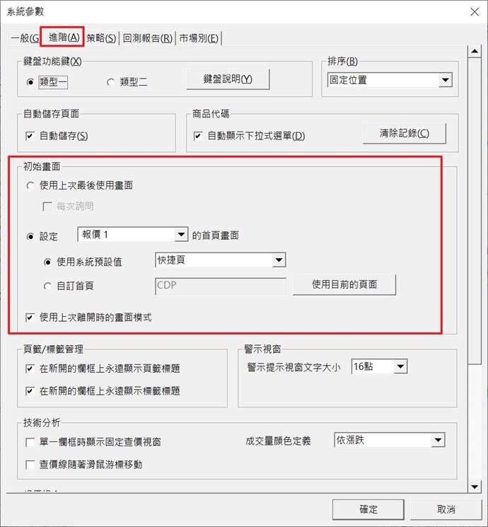 您好,請查看主選單的"設定"->"我的設定"->"系統偏好設定"->"進階"標籤,可以自行設定系統預設頁籤的首頁畫面(按工具列上的小房子icon會回到該頁的首頁)。