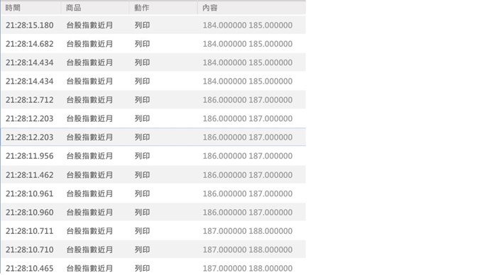 (2)我不清楚你如何用最佳委買價計算平均,若只抓一定時點的最佳委買價計算平均,用getSymbolField可以處理。