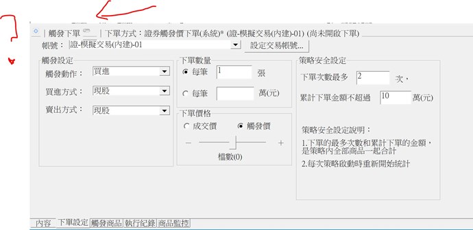 問題1:將你把觸發下單開啟並鎖定時,在沒有斷線的情況下,下單功能是會保持在開啟的狀態。