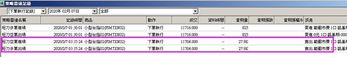 但是我發現策略雷達在 2.多單平倉(賣出) > 3. 賣出空單(賣出) 會有問題,雖然都會同時觸發,但是交易結果只會把多單平倉掉,並不會新建立一筆空單