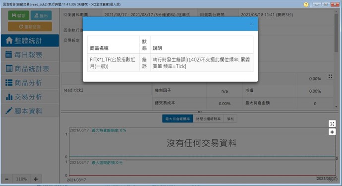 但是我提的 GetField("累委買筆","Tick"),是希望能在回測能使用,因為我回測就會像我上面圖示的無法使用。