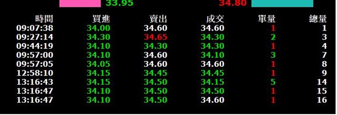 例如上述的範例 整天總量16 成交筆數為9 這樣