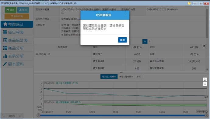相關人員目前正在確認原因,會建議您若回測頻繁發生此種狀況的話先退版會比較合適。