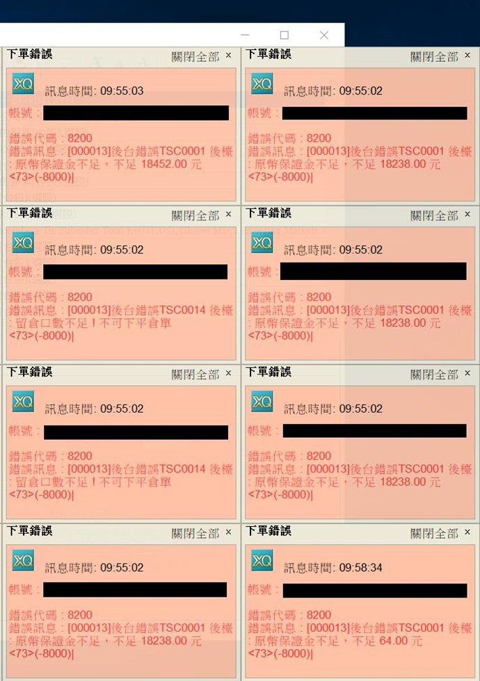 關於所述之「策略雷達時他一直跳出來這種類型的提示導致電腦當機」,小編猜想您指的應該是Sensor使用時會觸發的訊息(是「委託」/「成交」的提示,與上述交易帳號登入成功提示長的很像)