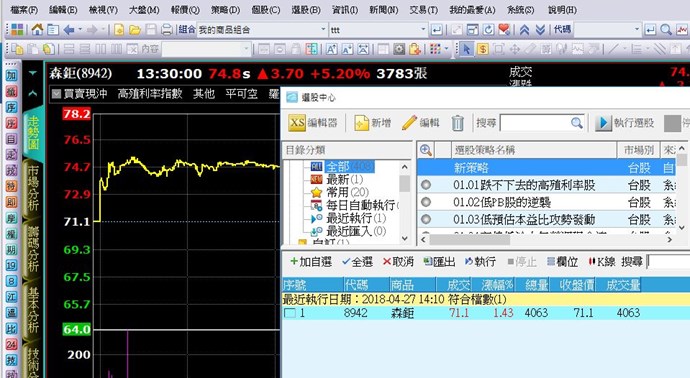 如果要盤中資料即時執行,小幫手建議你可以改用策略雷達,以上說明。