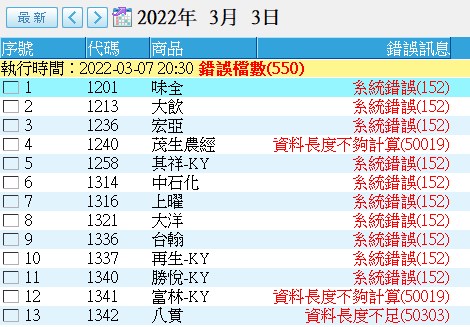執行選股後,有的個股會出來,有的個股則不會出現,被放在「執行錯誤的商品」之中。