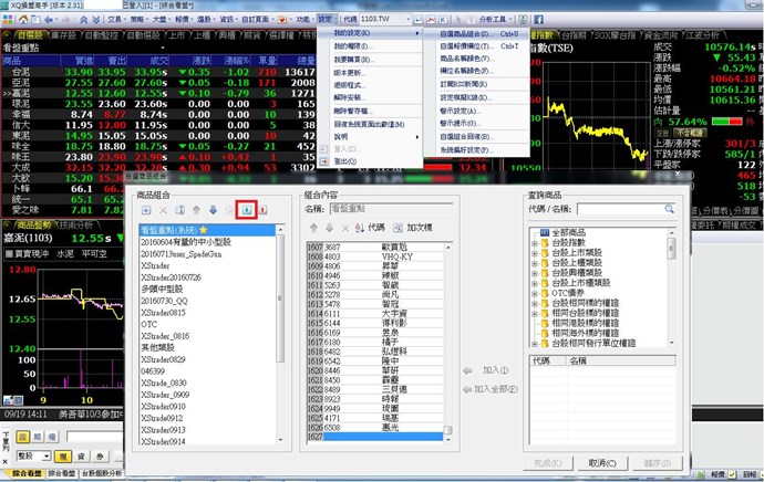 然後,到自選股商品組合視窗,按下【匯入】按鈕,如下圖紅框處