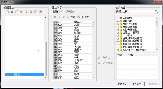 然後再匯入至自選股商品組合,點選匯入後的商品,確認資料無誤,