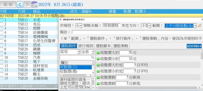 請問選股語法能否指定要篩選 各大類股 K線,而非類股中的個股?
