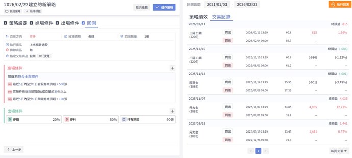 請問量化積木回測的出場條件要怎麼看?持有期間
