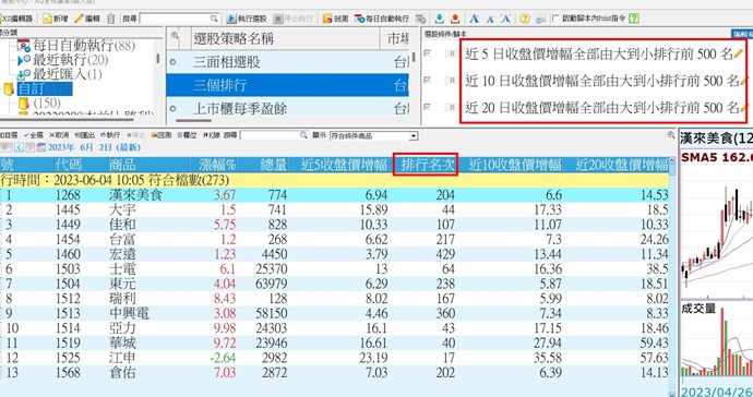 可以 自已排行---5/10/20 日 漲幅前50名 嗎??