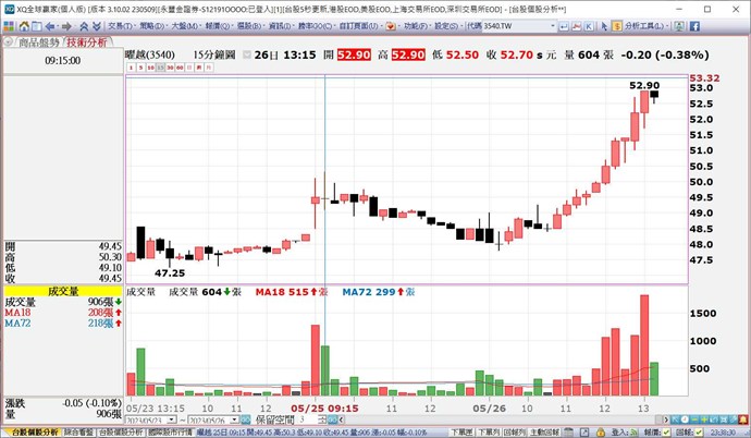請問高手 盤中15分K連續上漲---如何寫XS?? (05_26==3542曜越---盤中15分K連續上漲)