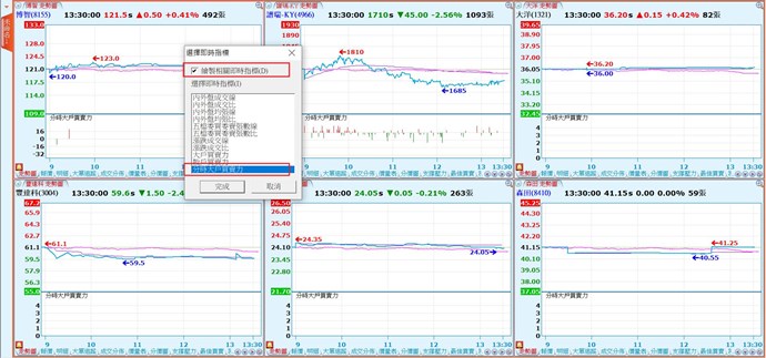 1. 在頁面上按右鍵→即時指標:請勾選“繪製相關即時指標”,並選擇「分時大戶買賣力」指標。