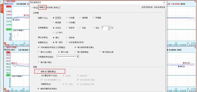 2. 在頁面上按右鍵→設定→繪圖頁籤:可以取消“繪製成交量副圖”。