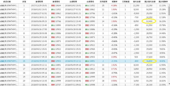 如下圖,例如在完成第15筆交易時當下,累計獲利金額為16800;曾經最大的獲利金額為32400,要抓出這2個變數值;煩請賜教