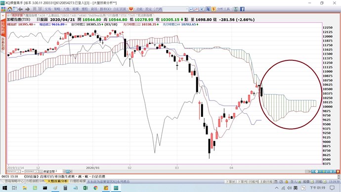 詳見附圖的圈框中, 日平均圖的雲帶部分, 我在XS中用plot好像做不出來, 又遍尋不著其他的畫圖保留字, 煩請開示如何用XS做出類似 [雲帶] 的效果