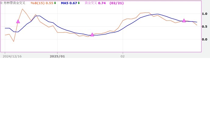 你的定義不清楚。布林通道有上軌、中軌及下軌三條線。用哪條來判斷黃金交叉?還有,是判斷與20MA的黃金交叉?還是什麼?