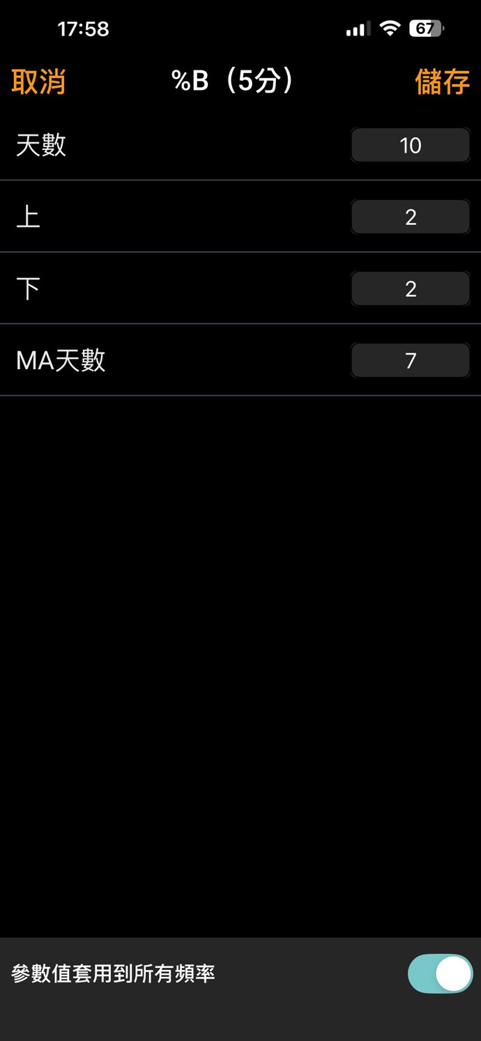 // %B =(目前價格 - 下軌)/(上軌 - 下軌)