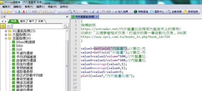 GETQUOTE("內盤量")可以開啟台期指 的指標功能嗎?
