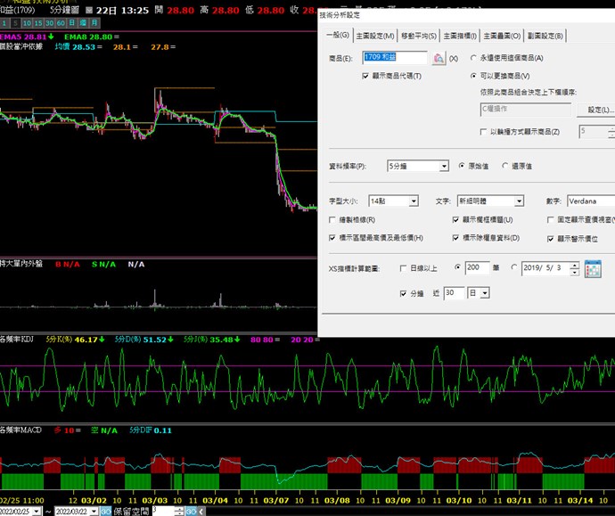 請問請問5分k棒的特大單只能顯示5日資料嗎? 還是有其它方法可以呈現出來?? 滑鼠右鍵的設定可以修改日期長度
