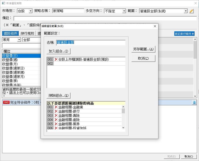 這個可以不需要寫程式處理, 選股範圍可以選定要排除的類股