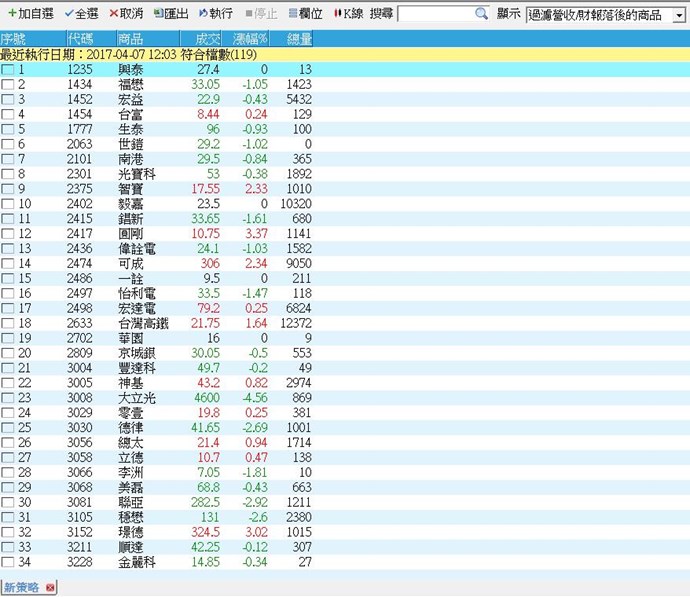 這幾日公布第4季季報及3月營收,希望篩選標準是第4季季報及3月營收為準,而不是第3季季報及2月營收,使用[過濾營收/財報落後商品]的選項,營收公告期間則又將第4季已公告的數字過濾掉了,請教這問題怎解決?謝謝~