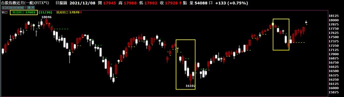就是,線圖的左半邊,假設如果是下跌段產生的『跳低缺口』(如圖中的黃框),