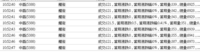 目前 程式碼 然後是使用1分K連續觸發 逐筆洗價