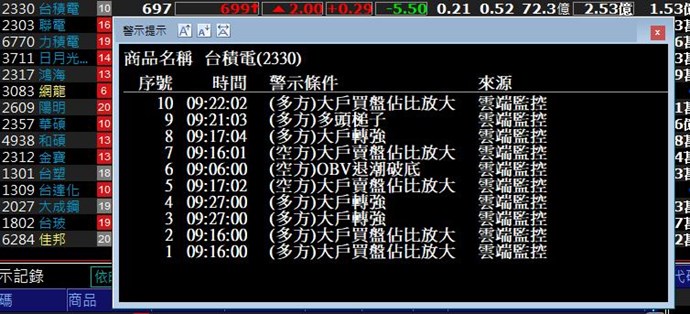 請問我在商品看盤畫面點取商品名稱紅框的警示提示List,時間上排序有問題,看起來又像是因為昨日系統沒有清除跳出的警示資料,導致與今天的累加上去,看起來很亂.