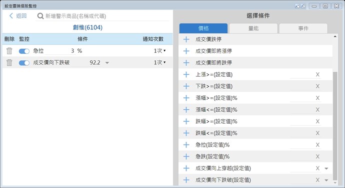 抱歉沒有說清楚,我是指個股監控內的設定"急拉"的部分