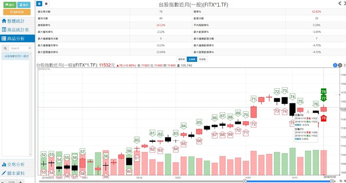 以日頻率回測 對象為台股指數近月時,
