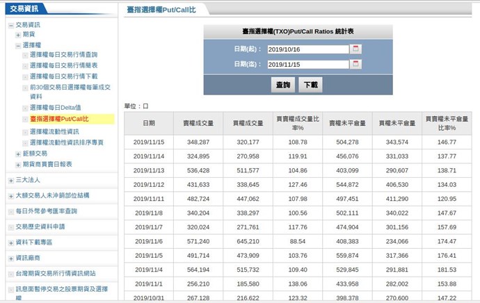 PC ratio也就是附圖期交所最右邊的 買賣權未平倉量比率%