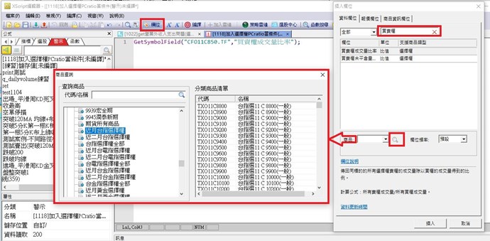所以需要在回測對象為 普通股 的買進腳本內 加入一個condition : PC ratio > 100%