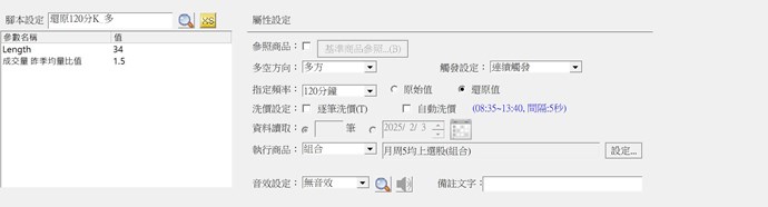 if barfreq<>"Min" or barinterval<> 120 then raiseruntimeerror("腳本只適用於120分鐘線");