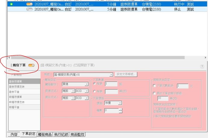 警示記錄檔數和模擬下單檔數不符(警示2紀錄檔,,下單紀錄0檔)