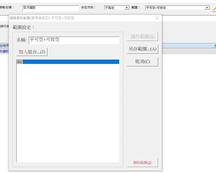 現在已可使用 "平可空+可放空" 這個選股範圍名稱,謝謝。