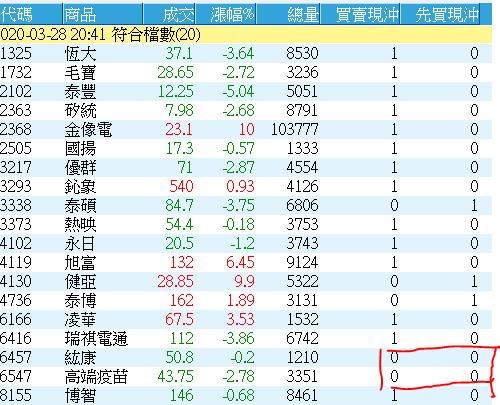 您可以利用選股中心查詢,或者是使用商品盤勢查詢