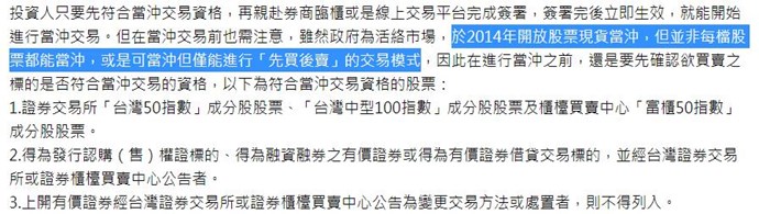 或者您可以詢問您的券商營業員,他們會更清楚相關股票的現沖規定喔~