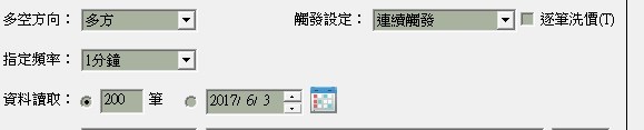 看過 「資料讀取範圍與腳本執行的關係 」 ,不解的是,如果「指定頻率」 不是設定「日」,而是設定「一分鐘」,「讀取資料」設定200筆,那麼系統所讀取的是的200筆資料是日K的200筆,還是一分K的200筆。