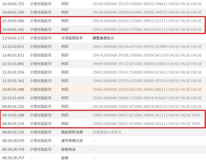 使用30分K,我看昨天匯出的紀錄,是沒問題的。但是今天卻出現了一個奇怪的問題。8:45開盤,會抓前一根CLOSE,9:15分,會抓到8:45的收盤價,但是,9:15抓到的卻和8:45相同,後面就沒問題了,就是開盤的第2筆有問題。下午3:30的也是這樣,也是開盤的第二筆會重複第一筆