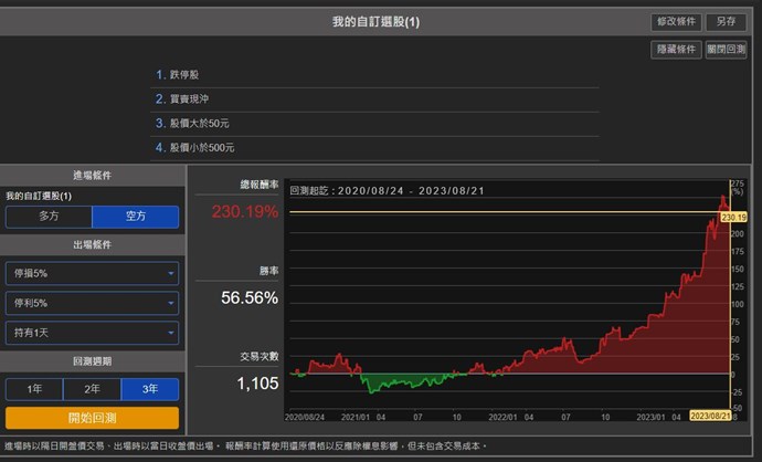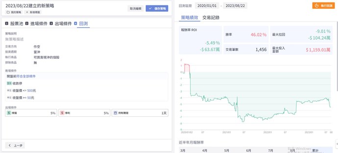 模式當沖、方向做空、獲利一樣都是+-5%,持有1日