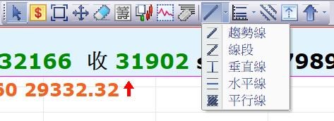 2.目前在技術分析可開啟「分析工具」工具列,有提供趨勢線工具。