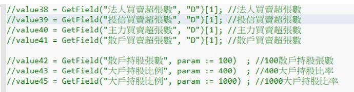 1. 如果使用在60分頻率時 可以嗎使用? 如指令改成 value43= Getfield ("大戶持股比率", param :=400, "W" )