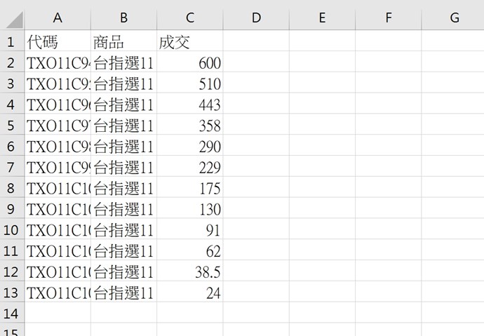 想請問如何把圖中框框內的價位輸出excel檔呢