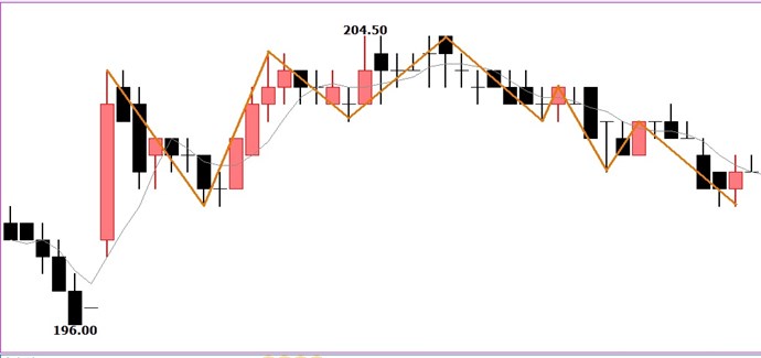 再將各個高低點連起來,以此類推,進而畫出那條橘色的線。