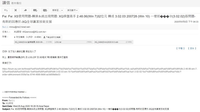 以上請 Mail 至 XQservice@XQ.com.tw,並附上此討論串連結,以利小編請相關人員查看問題的原因。