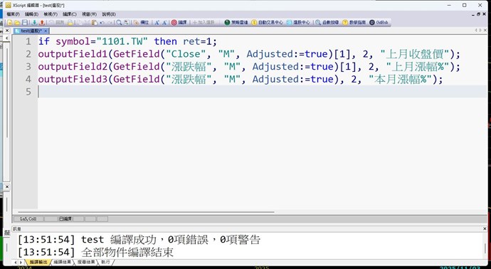 請問 為何此XS程式得到的 資料 有誤 (可以看1101的"月漲"幅數據)