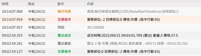 就圖上來看雖然有下交易指令, 但馬上就RaiserunTimeError, 沒有下出委託